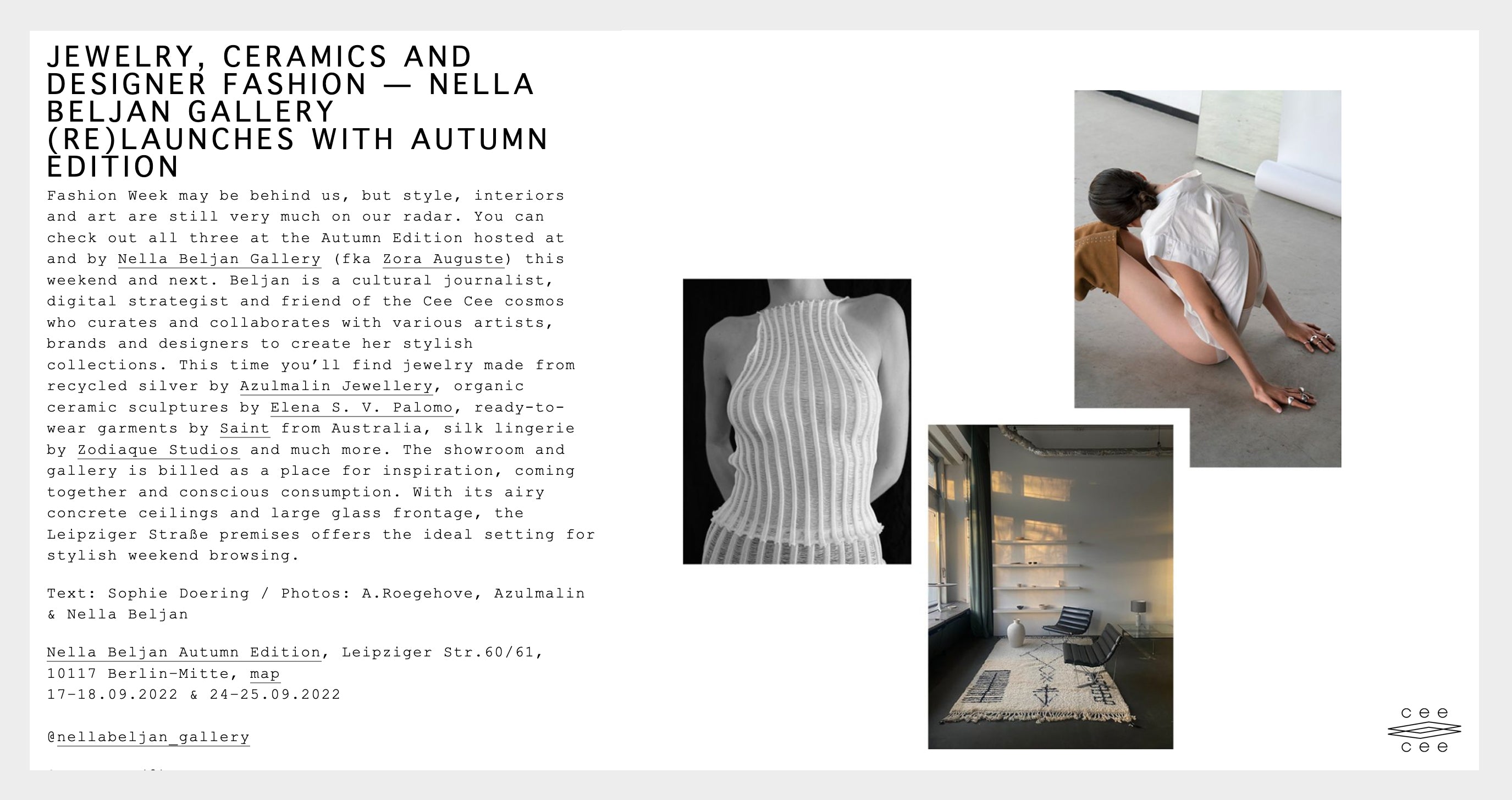 Nella Beljan Gallery & Showroom - autumn edition, 2022 -